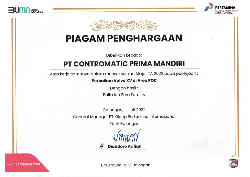 Our experts and certified service engineers, performed replacements to ensure the actuators meet current process requirements. This is part of an effort to optimize the reliability and operating capacity of RU V Pertamina Balikpapan.