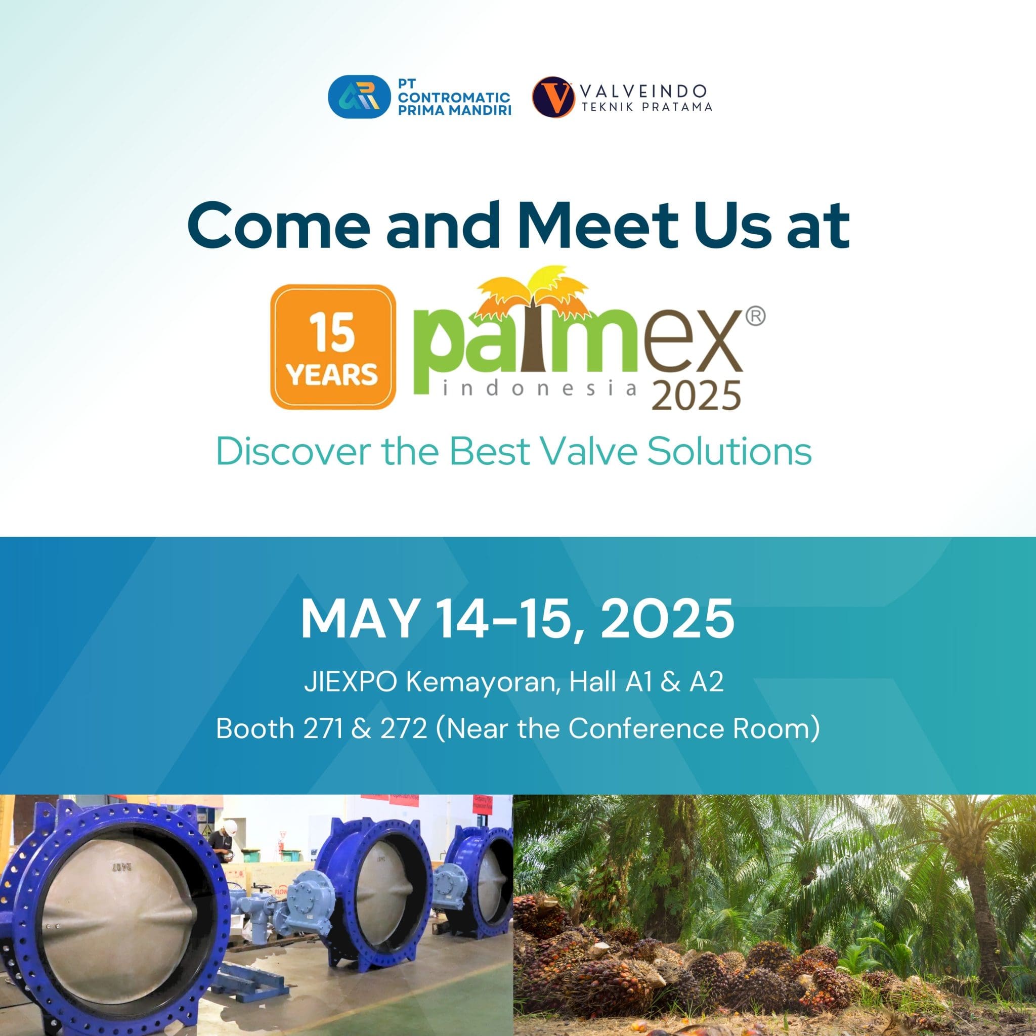 PT Contromatic Prima Mandiri & PT Valveindo Teknik Pratama are excited to welcome you to PALMEX Indonesia 2025! This premier exhibition brings together the latest innovations to enhance efficiency and sustainability in the palm oil industry